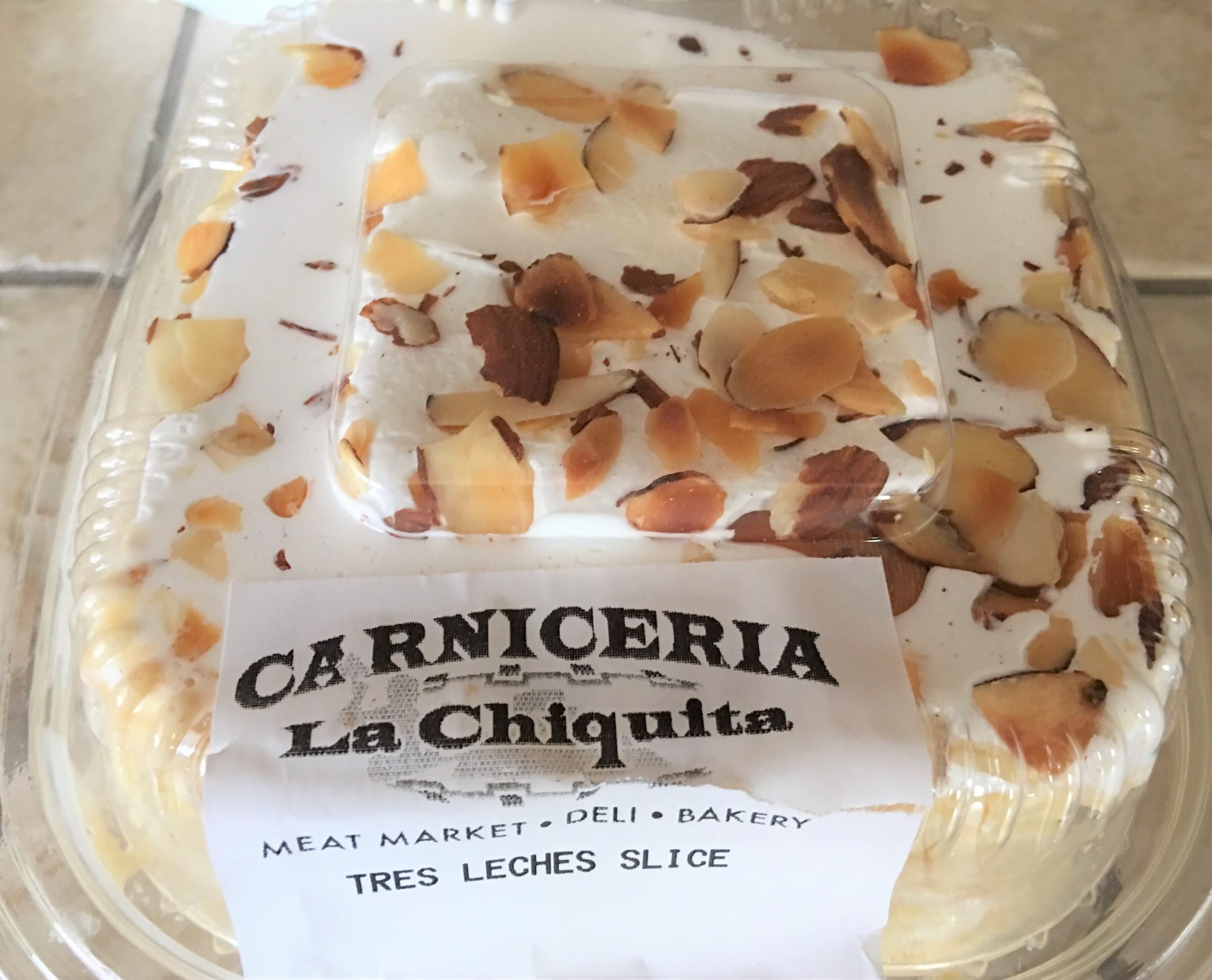 Tres Lechesケーキ、オリジナルとチョコ味。3種(Tres)のミルク(Leches)を使ったラテンアメリカ定番のミルク(練乳)漬けバターケーキ。ラテン・スイーツの割には意外と糖度は高くなく、しっとりしてて、かつ食感軽く、とーっても美味しい!  アメリカのスーパーマーケットとかで売ってるザ・USAなケーキより断然こっちが美味しく、やみつきスイーツリストに入ってます!