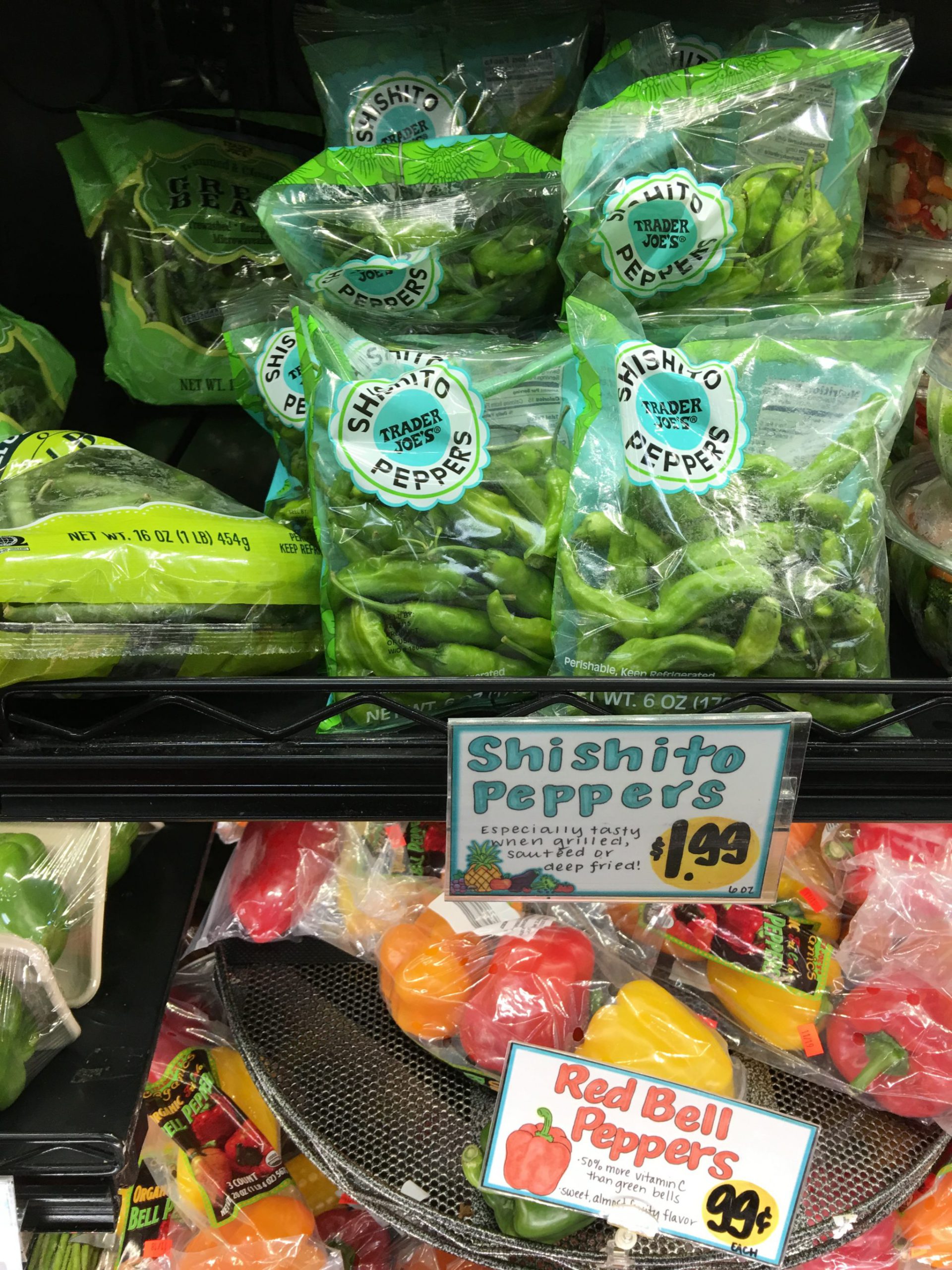 獅子唐、椎茸は新鮮で値段も手頃! キュウリはアメリカの普通のスーパーで売っているのは皮が硬く極太で水っぽいものが主流でサラダにはいいけど和食系には向かないですが、ここのPersian Cucumbersは限りなく日本のキュウリに味や食感が近いので酢の物やお漬物などに大活躍します。写真には写ってませんがEnglish Cucumbersも使えます、そしてトレジョで買うと普通のスーパーよりたいてい安い。