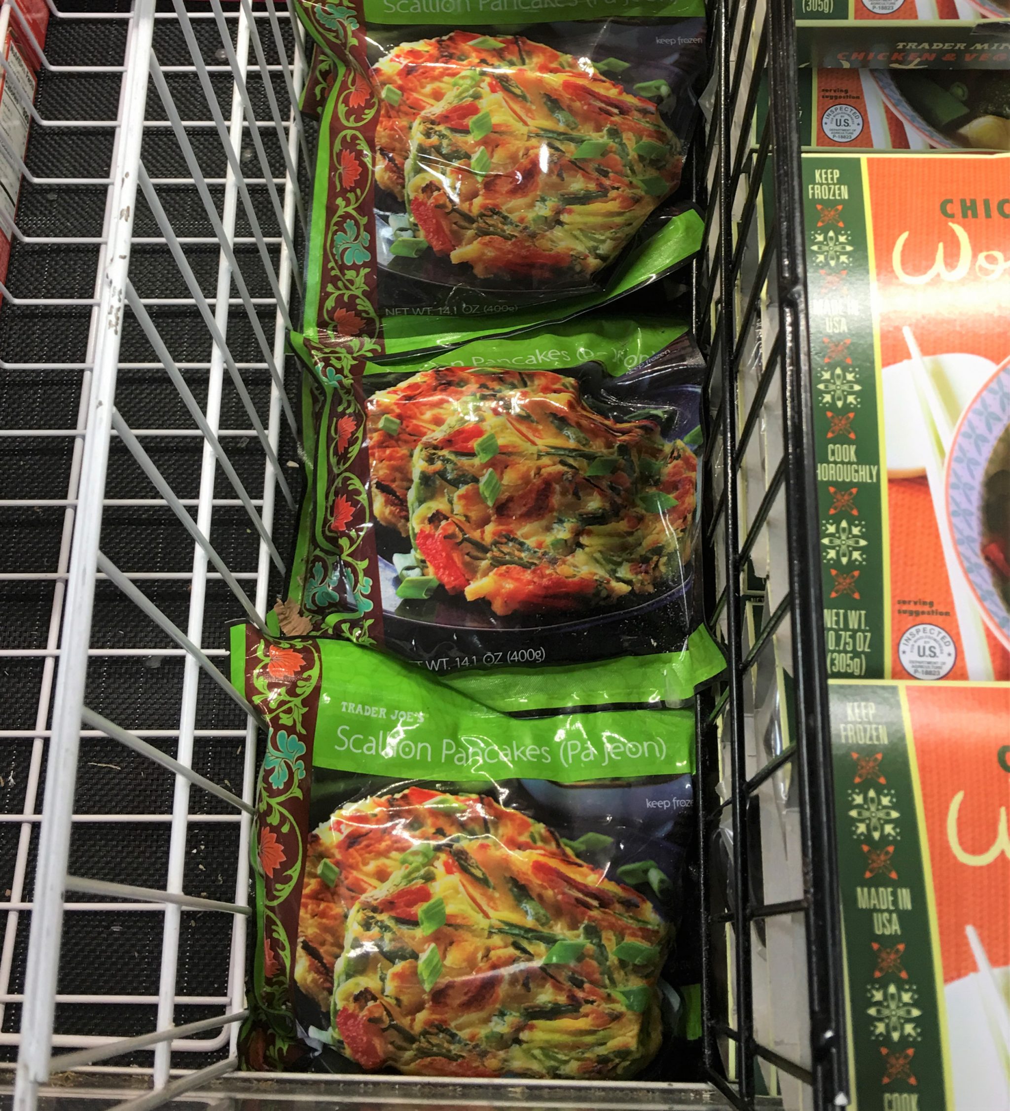 晩御飯の献立に悩む日に助かる冷凍しゅうまい(上左)、冷凍餃子(上右)。日本から遊びに来た母は日本にこそ美味しい餃子い~っぱいあるのに何故かトレジョの餃子の大ファン。餃子は一袋約24個入。上右写真の餃子は豚ですが鶏の餃子やタイ風味な餃子なんかもあります。
